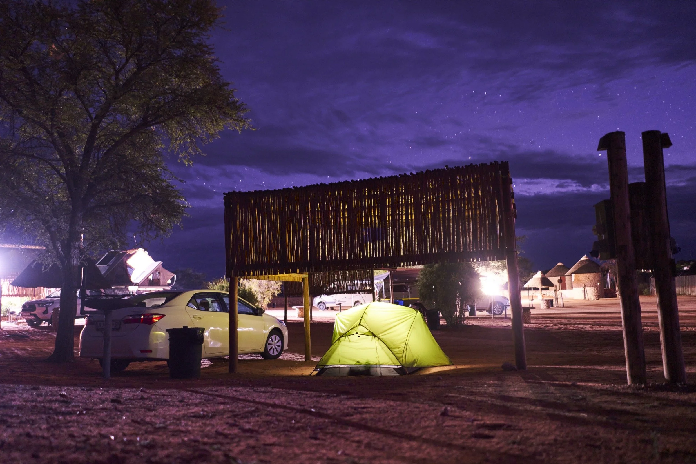 Wir zelten. Für 20€ die Nacht ganz spontan, weil wir einfach ein bisschen früher mit allem anderen "fertig" sind - die Fahrt und die Wasserfälle liegen hinter uns, die Buchung im Tented Camp noch vor uns. Also eine Nacht ins Zelt!