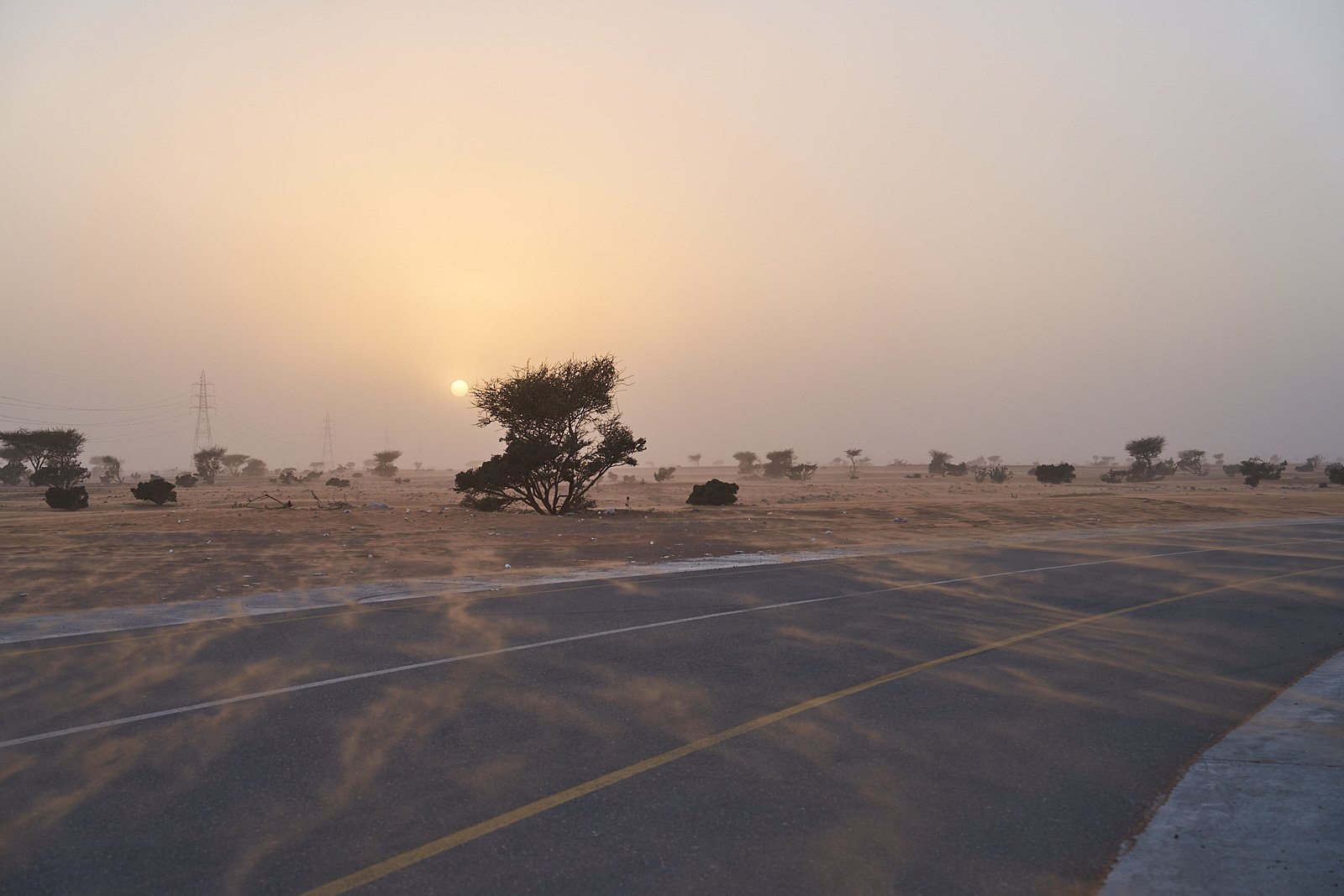 Die Fahrt über die Schnellstraße ist fürchterlich langweilig. Sie wird in erster Linie von LKW genutzt, die für die Versorgung zuständig sind. Es gibt ein paar kleine Orte, aber wir finden nichts nennenswertes darüber und brettern einfach durch. Die Wüste links und rechts ist keine schöne Sanddünenwüste, sondern einfach Schotter. So weit das Auge reicht. Ein Highlight: Kamele kreuzen die Autobahn. Einfach so, ohne Vorwarnung. Der Verkehr bleibt also für kurze Zeit stehen, lässt die Karawane passieren und fährt unbeirrt weiter. Ich kucke ihnen natürlich noch so lange hinterher, bis wir auch weiterfahren müssen…
