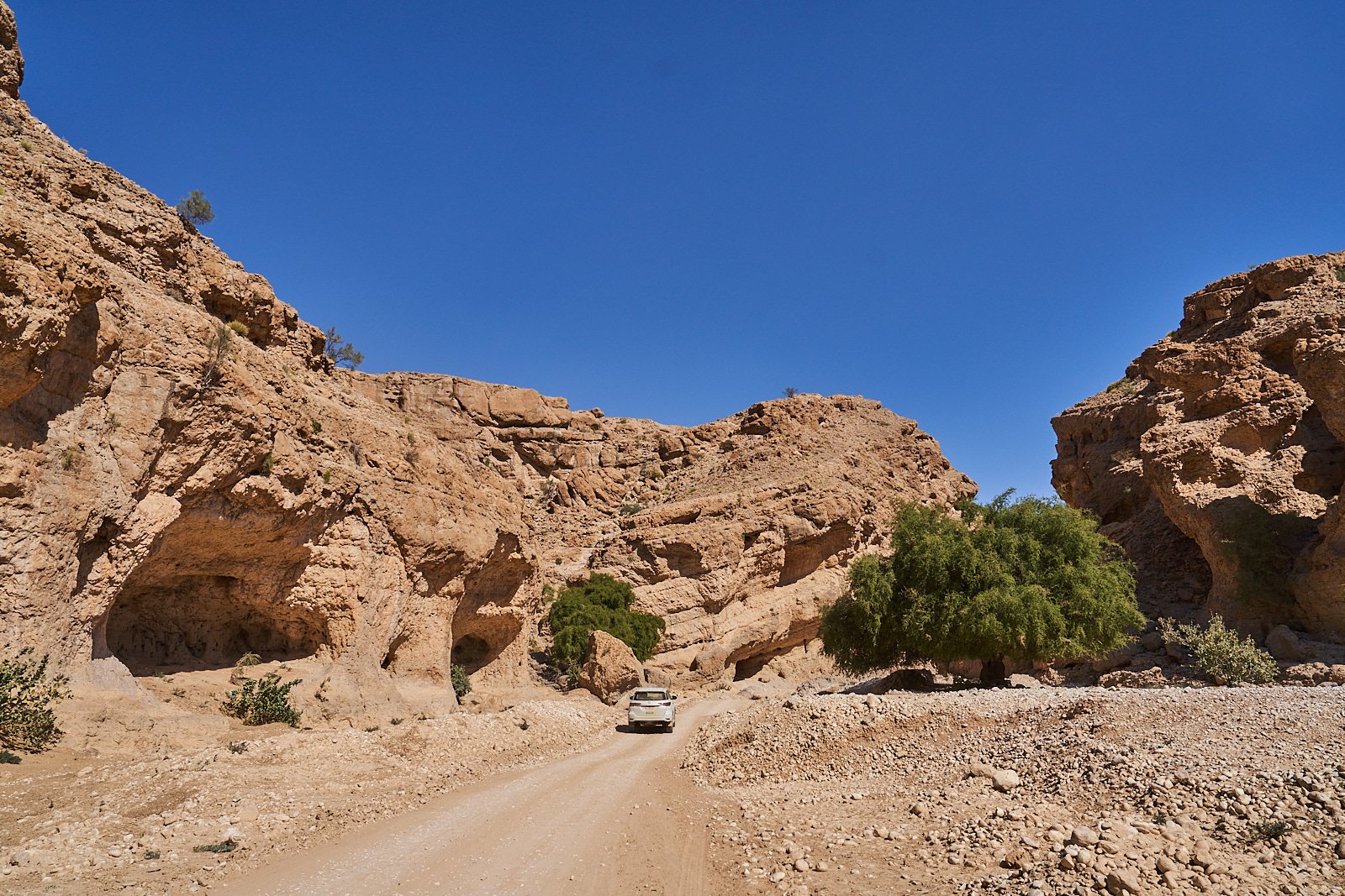 Natürlich schaffen wir es nicht auf 8 dort zu sein sondern erst um 11 - und drehen nach nur sehr kurzer Überlegung direkt wieder um. Die Touristen werden Busseweise hier her gekarrt und erreichen das Wadi um genau 11 Uhr um dann in Scharen vor zu wandern. Keine Lust. Wir erinnern uns an unser Treffen in Bidiya mit unseren Freunden aus Deutschland, die ähnlich wie wir einfach keine Frühaufsteher sind, schon garnicht im Urlaub. Sie sind um vier gekommen, denn dann sind alle wieder weg. Also fahren wir wieder, machen eine Rundtour in der Gegend…