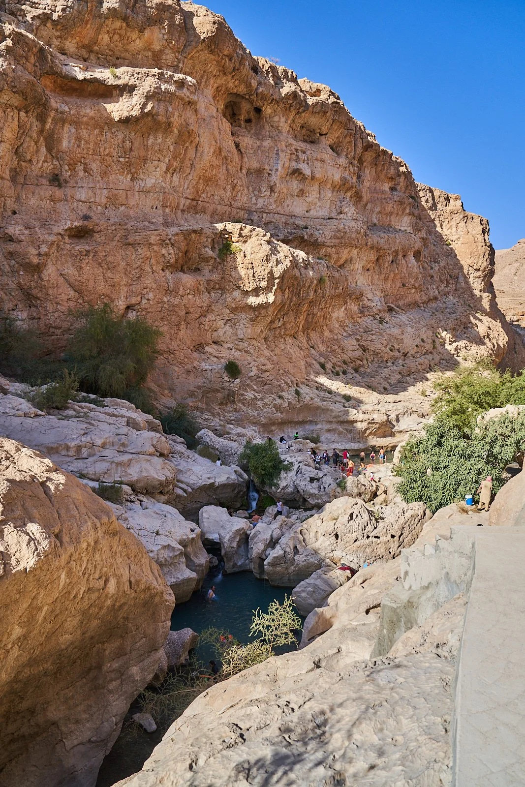 Omans spektakulärste Wadis liegen unterhalb Muskats am Meer. Das Gebirge führt nämlich direkt ins Meer und formt hier die schönen, tiefen Schluchten. Die drei bekanntesten sind das Wadi Bani Khalid oberhalb Bidiyas, das Wadi Shaab und das Wadi Tiwi, die beide sehr nah beieinander liegen. Wir besuchen alle drei.
