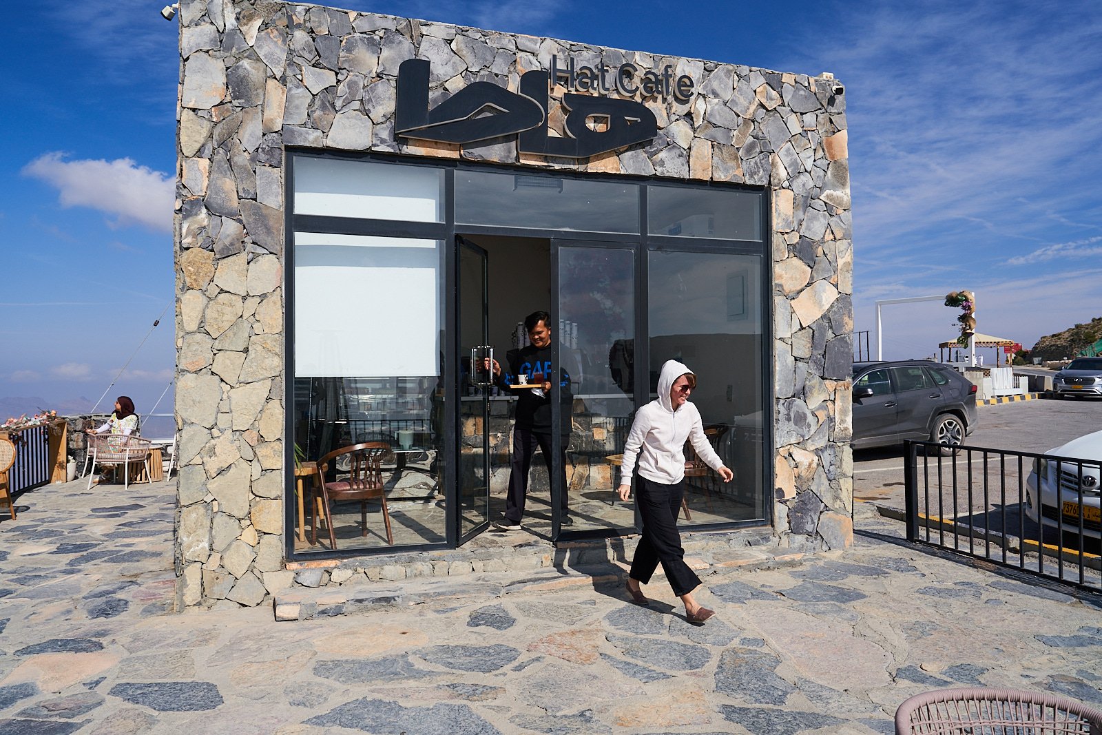 Aber wir kommen am Ende unserer Reise durch Oman noch einmal ins Gebirge zurück. Wir fahren eine ähnliche Passstraße, über den Ort Nachl anstatt über Rustaq, enden aber wieder am selben Café - jetzt gibts Tiramisu zum Cappuccino statt Pistazientorte.