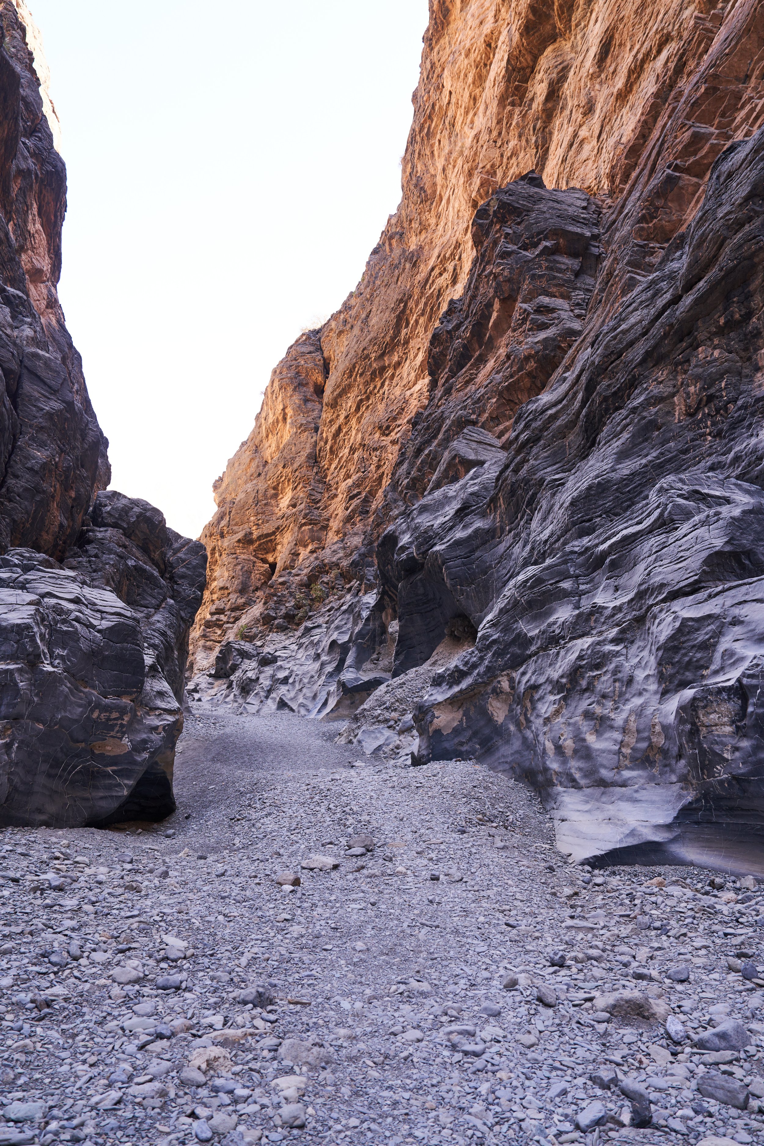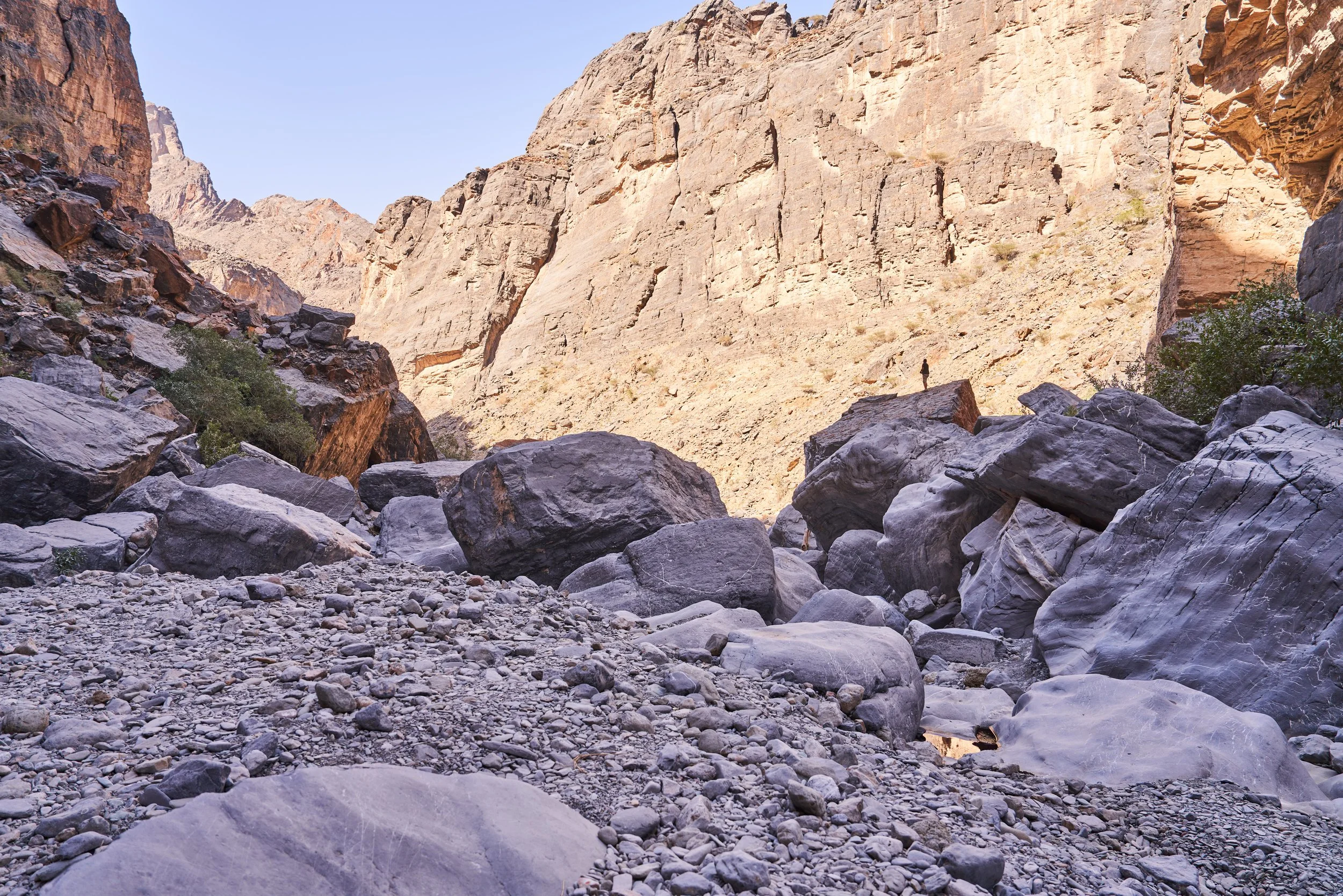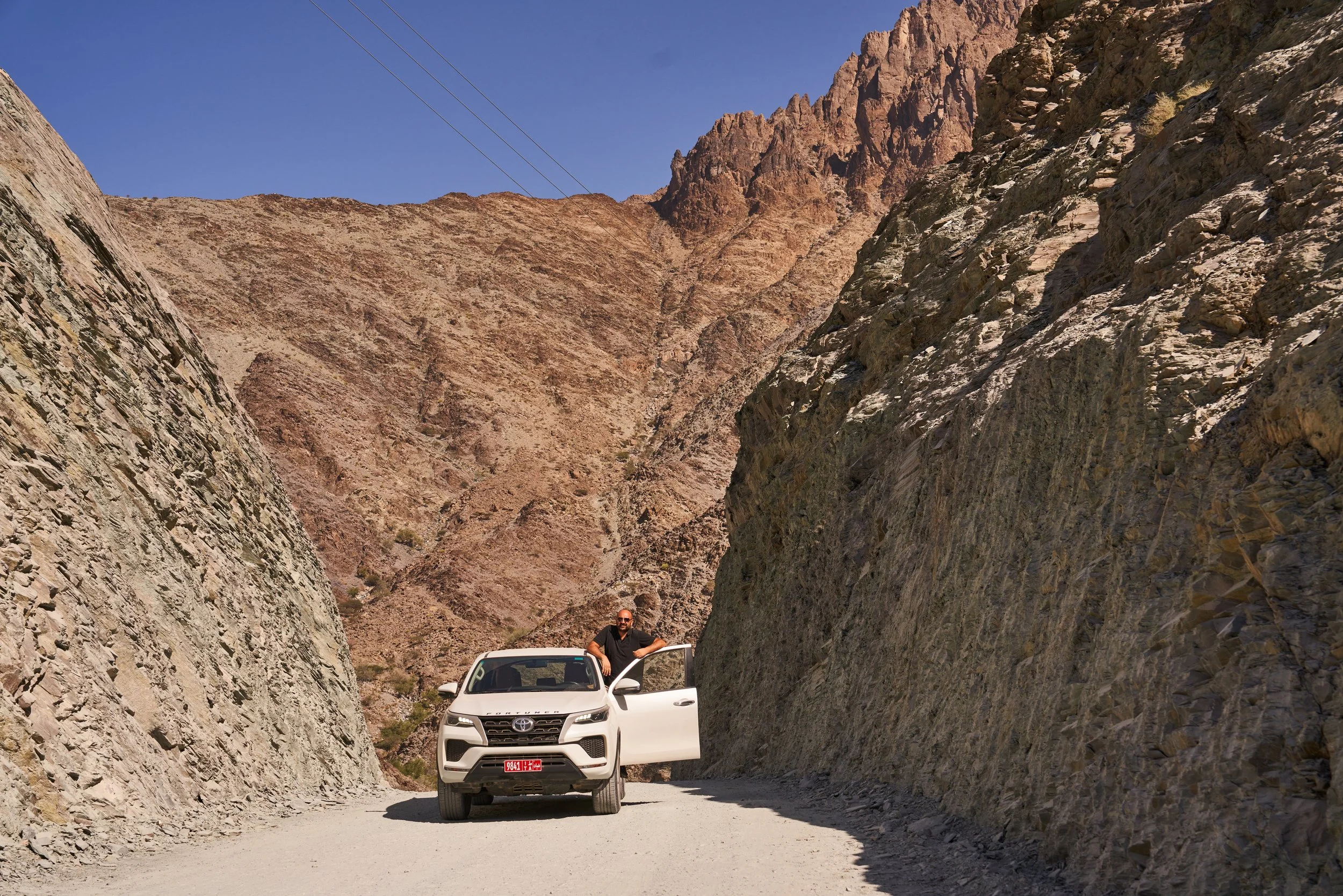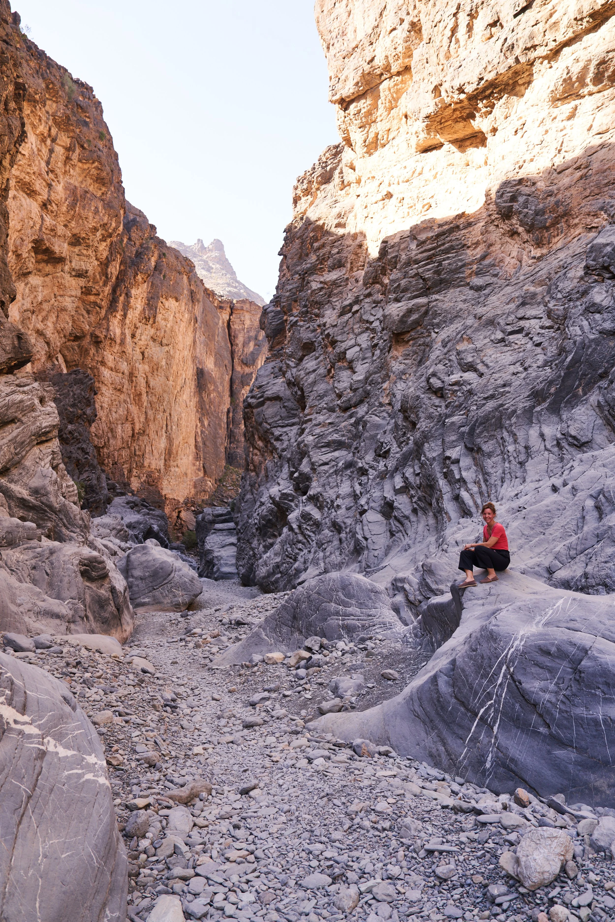 Diesmal widmen wir uns dem Snake Canyon. Hier kann man wandern und klettern gehen. Beide Straßen führen am Canyon vorbei und kommen hier zusammen; Bima ist der nächste eingezeichnete Ort und ab hier wird’s Richtung Nizwa sehr kurvig und dauert nochmal deutlich länger als die beiden Wege von der Küste. Unbedingt mit Allrad fahren, es gibt sogar Schilder, die einem dann sagen “jetzt auch anschalten”