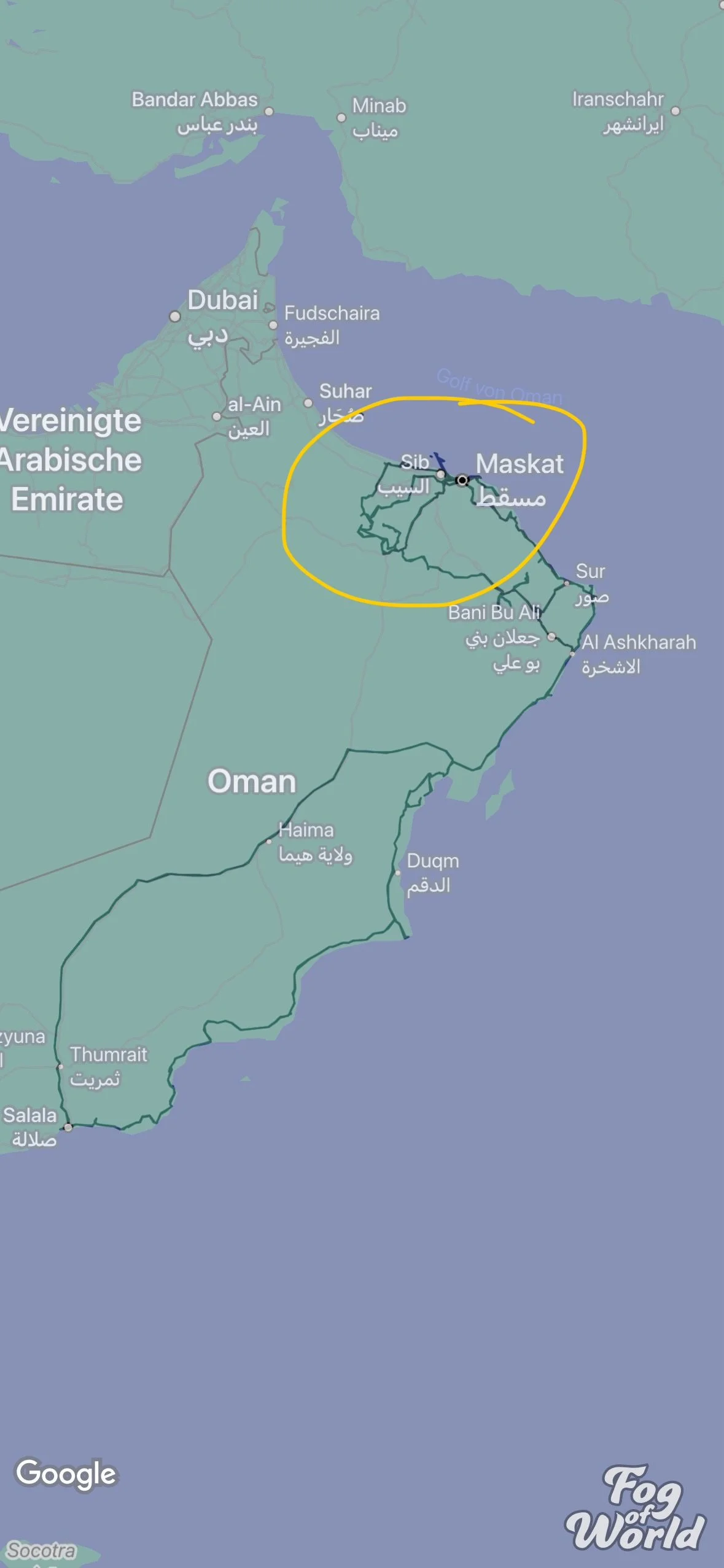 Wir starten in Muskat, bzw. in Seeb. Da wir den Nachtflug gewählt haben, der in 6h über Nacht nach Muskat fliegt, sind wir total gerädert. Man schläft ja doch nur etwa 2h - wenn überhaupt. Das hat man mal recht gut weg gesteckt, so ne durchgemachte Nacht. Steck ich jetzt nicht mehr so einfach weg. Ich schlafe gefühlt die nächsten drei Tage nach 10 Minuten Fahrt im Auto auf dem Beifahrersitz ein. Also schieben wir zumindest schonmal das Schnorcheln auf den Daymaniyat Inseln nach hinten - haben ja genug Zeit!