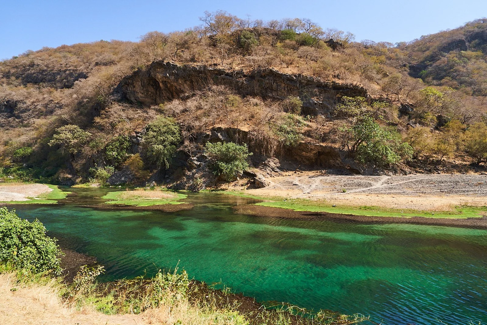 Aber der gesamte Küstenstreifen ist zugemüllt. Plastik überall. Und dazwischen tote Fische, große tote Fische, türkis und in allen Farben… Was bringt diese Fische um? Illegale Fischerei? Oder vergiftetes Wasser von den Salzanlagen ein paar Kilometer südlich?