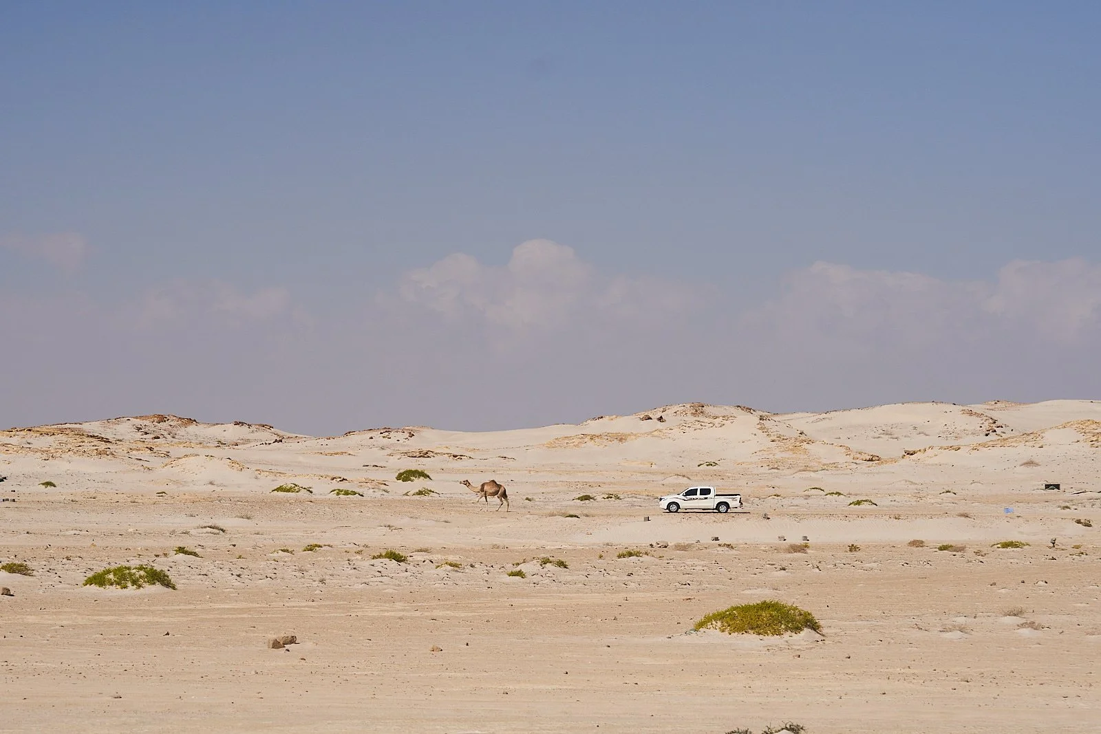 Auf dem Weiterweg liegt Duqm. Für die meisten, die ohne Zelt unterwegs sind, der Zwischenstop von Salalah nach Muskat. Wir trafen in Hasik ein Pärchen beim Essen, sie sind morgens in Duqm gestartet und wollten nach dem Essen noch weiter bis nach Salalah. Sie wirken unzufrieden und gestresst. Vermutlich, weil die Strecke doch länger ist als man meint. Und langweiliger.
