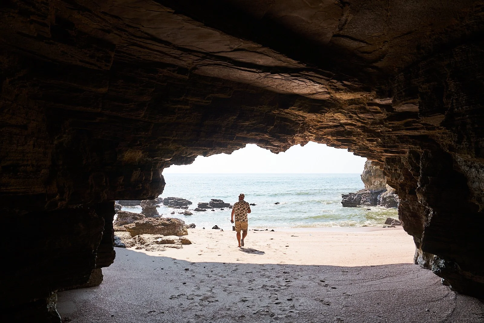 Am nächsten Tag ging es für uns noch in die nächste Bucht, nach Al Khaluf. Hier gibts ne Höhle - und die Möglichkeit an den Strand zu fahren! Die Humrat Cave ist auf Google eingezeichnet und hinter den dort stehenden Ruinen geht es ein bisschen durch seichte Dünen an den großen Strand der White Sugar Dunes - den man entlangfetzen kann! Möwen aufscheuchen inklusive.