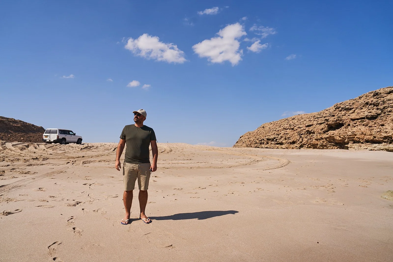 Ich hab obendrein Migräne. Daher gibt es auch kaum Aufnahmen von den wirklich weißen Dünen (weiß, bis auf die paar Schandflecken eben). Im Video kann man es bestaunen. Dune Bashing ist möglich.