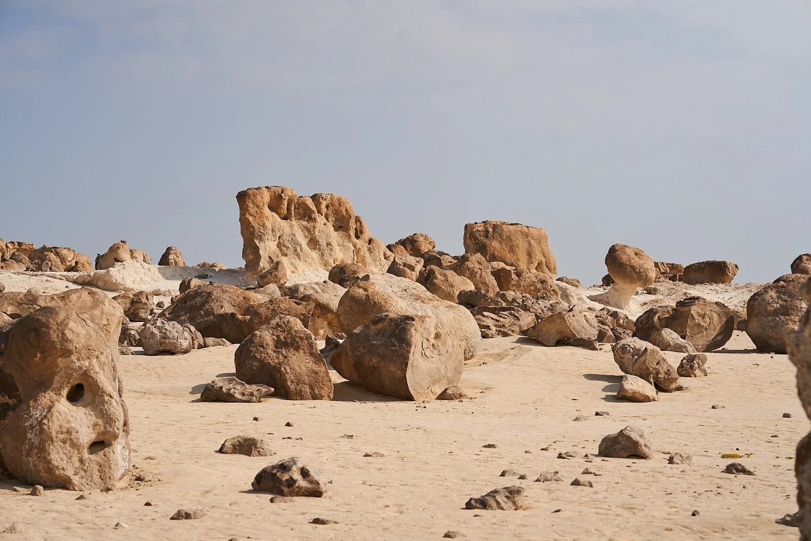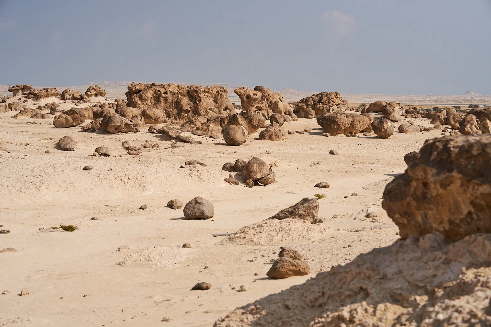 Wir bleiben in Duqm nur für einen kleinen Spaziergang durch den Rock Garden (findet man auf Google) für den man keinen Eintritt zahlt aber an eine Kopfbedeckung denken sollte. Hier gibt es - oh wunder - nur Steine. Tolle Steine, große Steine, lustig geformte Steine. Kein Schatten.